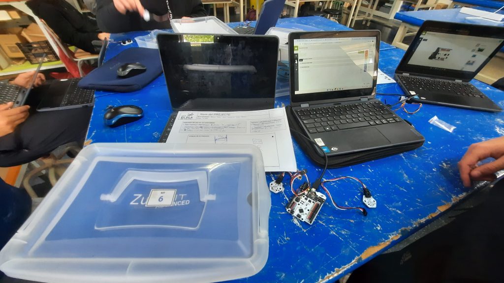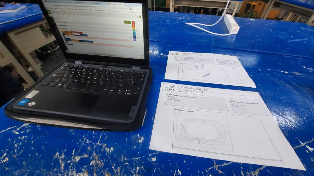 Anem treballant en l’automatització de diferents espais d’una pista d’atletisme. En petits grups l’alumnat programa diferents punts, alguns han escollit els accessos al recinte. Altres es centren en les competicions esportives: cronometratges, control de sortida de les curses, ….