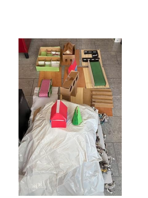 Tenemos 6 parejas trabajando en cada una de las zonas en las que hemos dividido la maqueta y en paralelo, como también se refiere el título, los 4 alumnos más inclinados hacia la programación, están avanzando en dejar programada correctamente la parte de la robótica que luego hay que incluir en la maqueta, en colaboración con los que están fabricando cada parte de la maqueta.