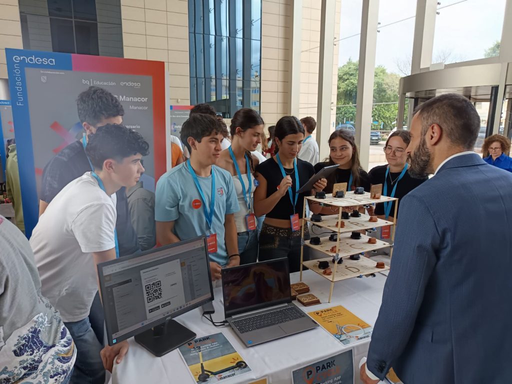 Los alumnos de la asignatura de Digitalización en 4º de la ESO del centro educativo IES Manacor acudieron al Festival Autonómico RetoTech el jueves 22 de mayo de 2025 para mostrar al público el proyecto ParkCycle.