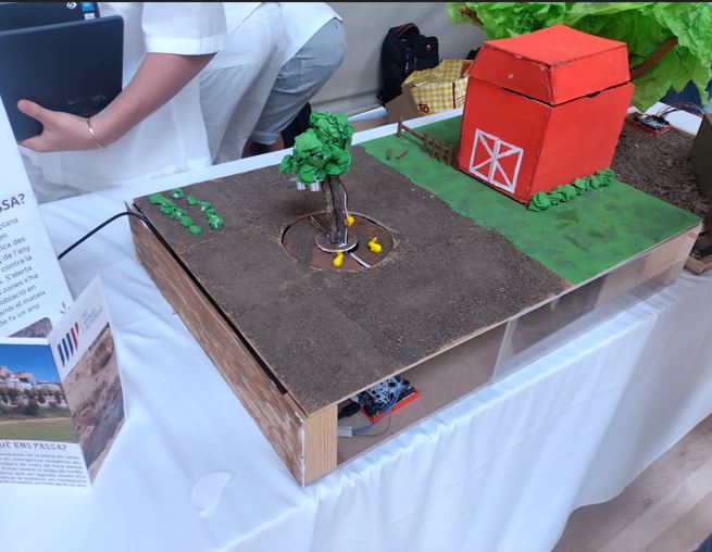 Finalment, vam portar dues maquetes de prototips de trampes per a capturar conills. I és que a la nostra comarca, l’Urgell, aquests representen un problema important per a l’agricultura, ja que la població d’aquests animals està descontrolada i fan malbé grans extensions de collites.