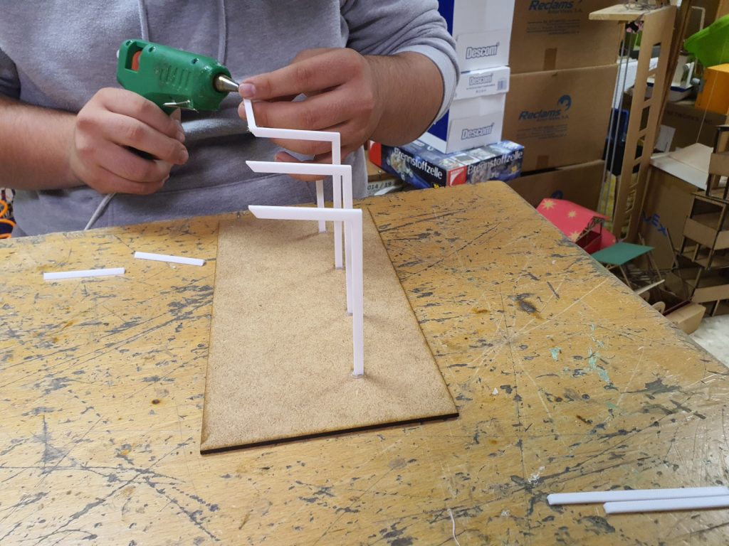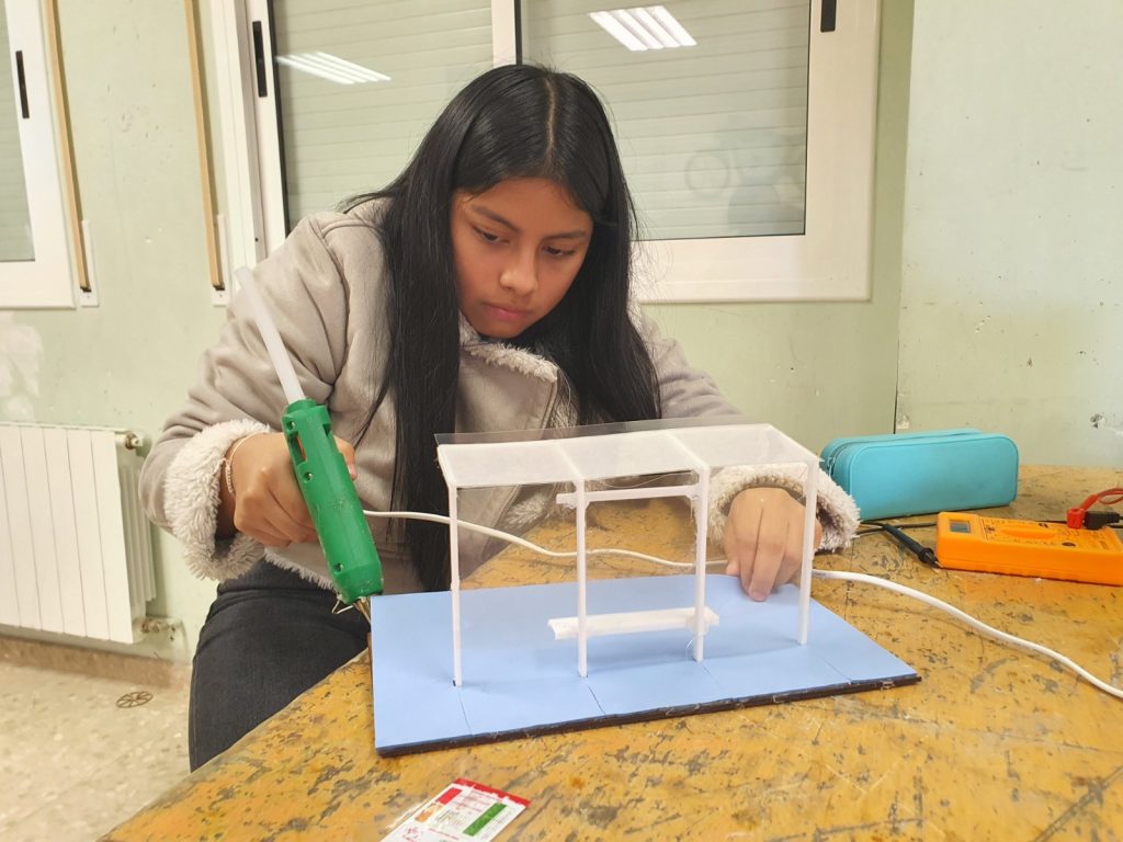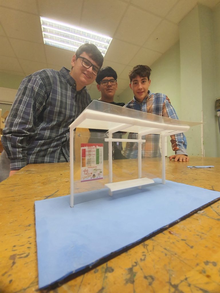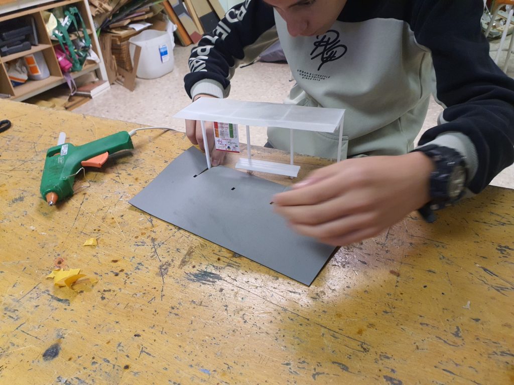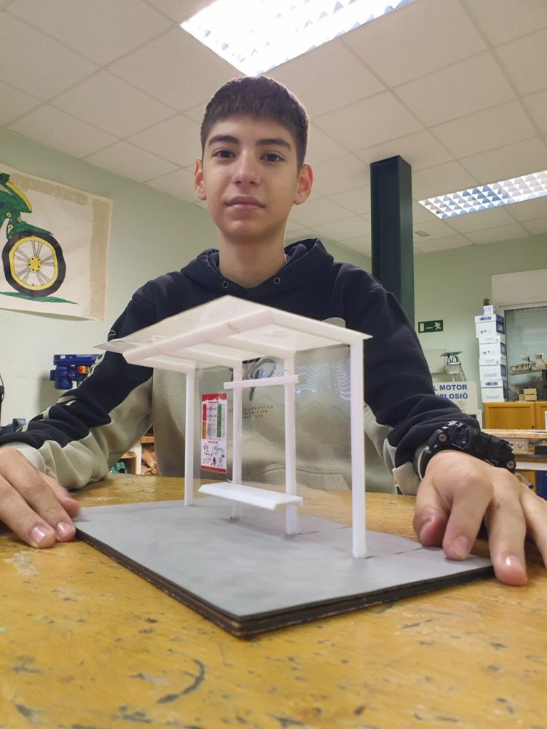Amb totes les parts impreses, els alumnes han pogut muntar la maqueta completa de la parada de bus, integrant els elements estructurals i valorant aspectes com l’estabilitat, les proporcions i la funcionalitat.