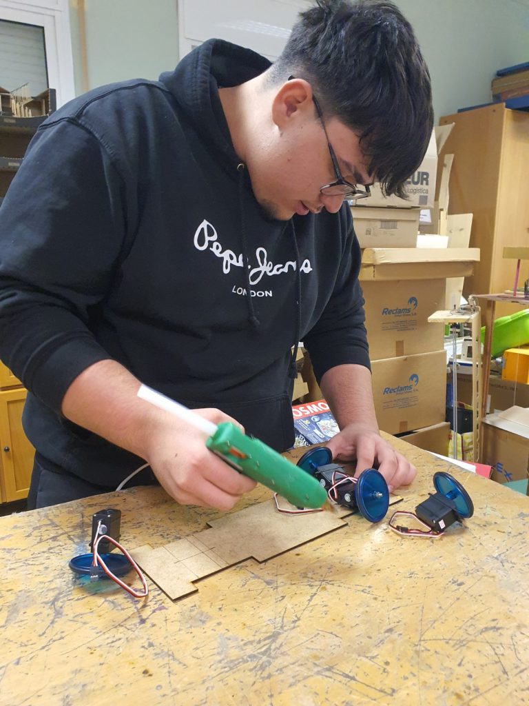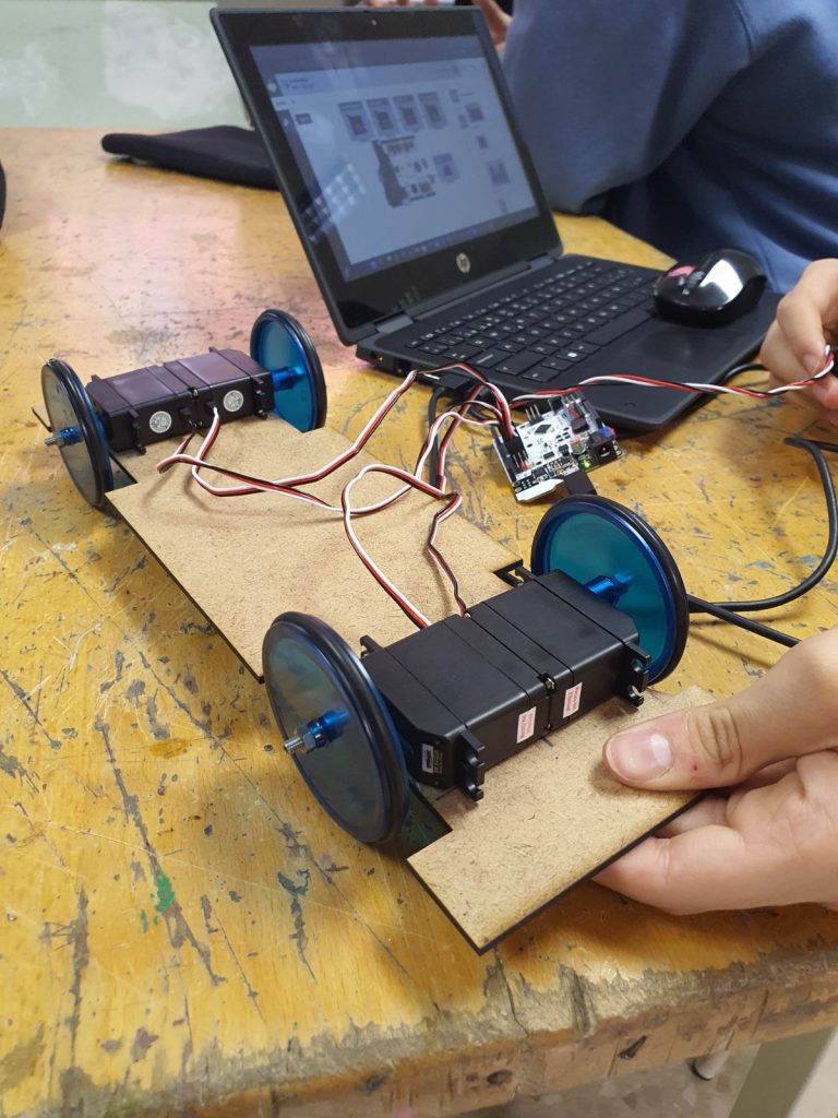 Aquest treball ha requerit cura en l’alineació i la fixació dels motors per garantir un moviment estable i coordinat. Un cop assegurats a la base, la maqueta ja ha començat a prendre forma com a vehicle mòbil, establint les bases per a futures ampliacions del projecte.