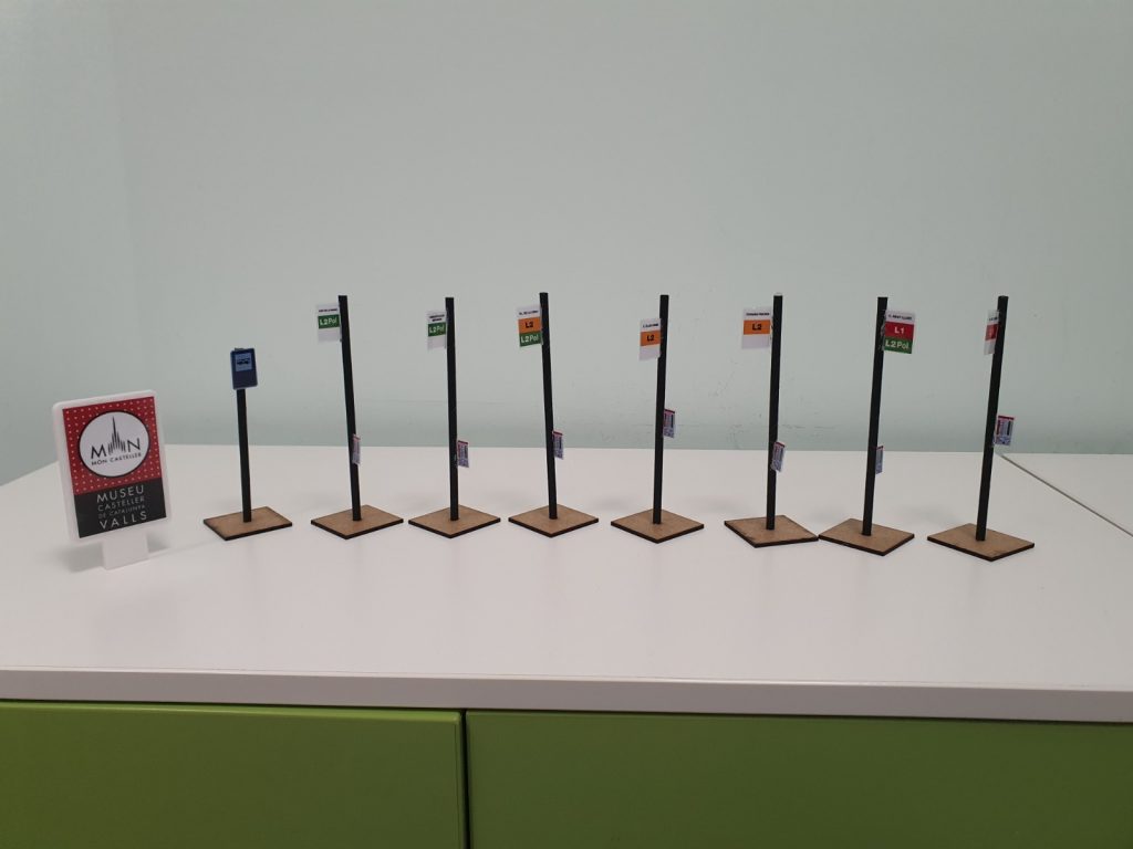 Dins del projecte del bus urbà de la ciutat de Valls, l’alumnat de 4t d’ESO ha treballat la senyalètica de les parades com a element clau de l’espai urbà. En aquesta fase, els alumnes han modelitzat a escala 1:20 les diferents parades de bus sense marquesina corresponents al casc urbà de Valls, tenint en compte la seva diversitat i adaptació a l’entorn.