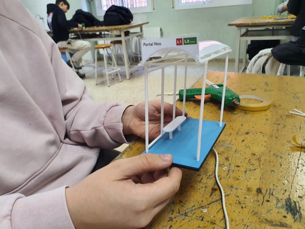 Amb totes les parts impreses, l’alumnat ha pogut muntar la maqueta completa de la parada de bus, visualitzant així el resultat final del treball realitzat al llarg del projecte. Aquesta fase ha estat clau per entendre el funcionament estructural de la marquesina i la relació entre les diferents peces que la conformen.