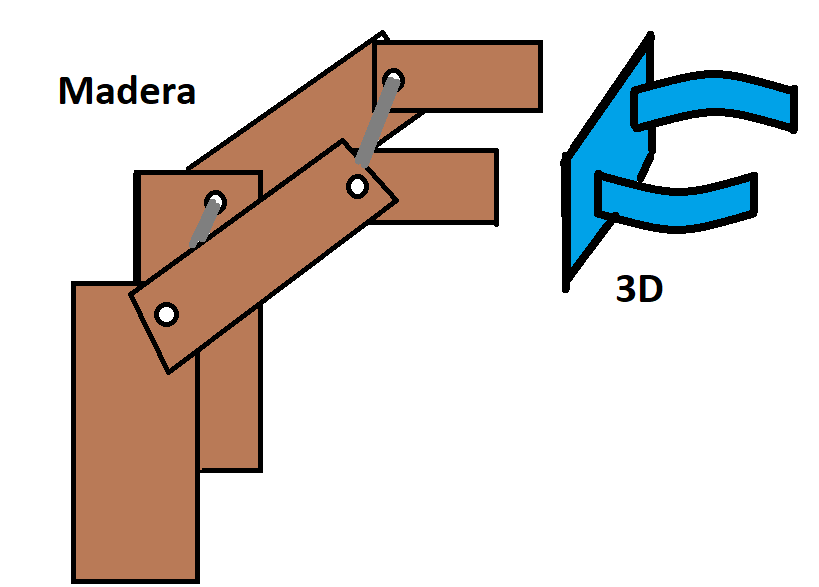 Tras estudiar varios diseños de brazos articulados que estaban disponibles en internet, se simplificó uno de estos diseños. La idea era poder construirlo rápidamente con panel de madera y piezas de impresión 3D.
