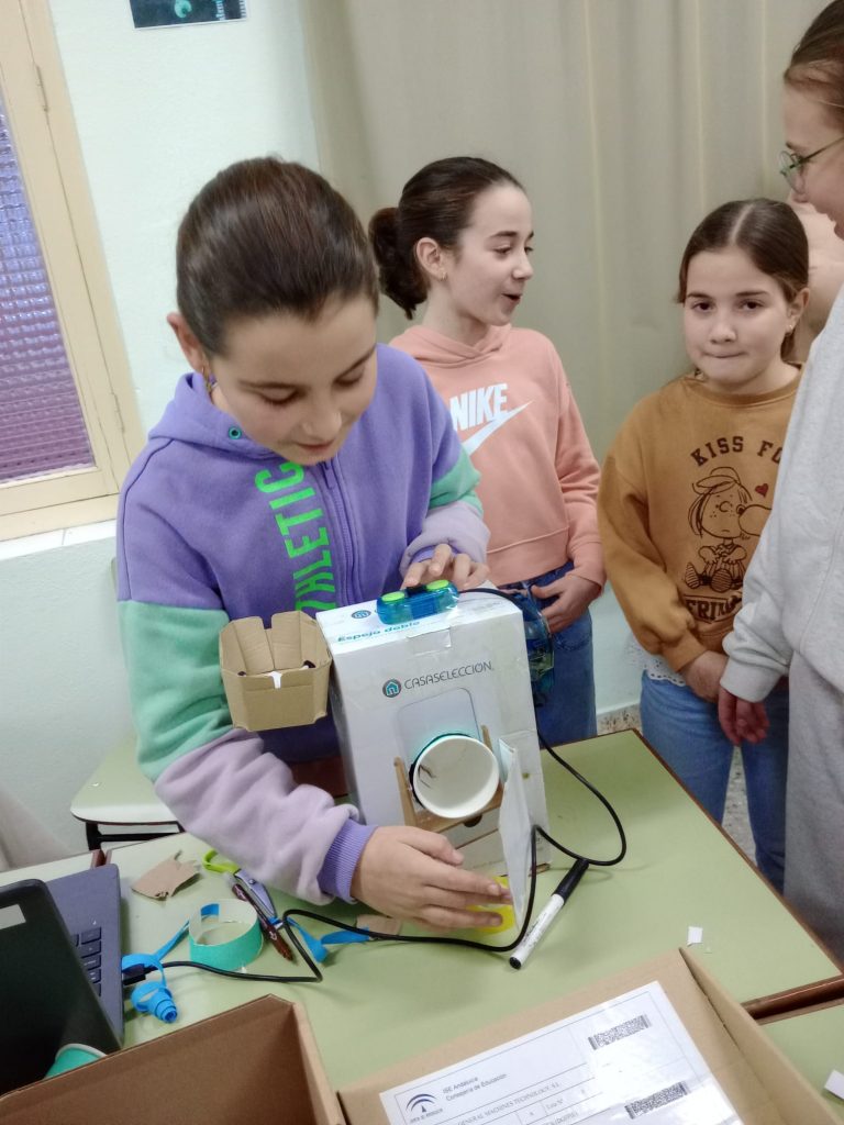 Durante el mes de febrero organizamos dos talleres por la tarde en los que nuestros alumnos y alumnas acudían con sus familiares a una sesión de una hora y media. En ellas aprendían a utilizar los ZumKit, construían un pequeño proyecto —este año, una lavadora— y después lo exponían al resto de participantes.