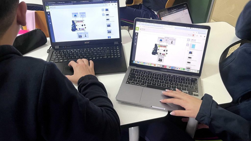 La programación por bloques reforzó la comprensión visual del proceso y la conexión entre lo digital y lo físico. Ver cómo una idea en la pantalla se transformaba en una placa que respondía con luz, movimiento o sonido ayudó a consolidar aprendizajes. A esto se sumó una constante revisión de errores y reorganización de bloques, que enseñó a los estudiantes que programar es siempre un proceso de mejora continua.