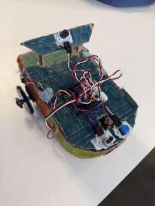 Primero utilizamos un botón para controlar parte del movimiento del coche. Después trabajamos con un potenciómetro para hacer que, al girarlo a la derecha, el coche girara también a la derecha, y al girarlo a la izquierda, hiciera lo mismo hacia ese lado.