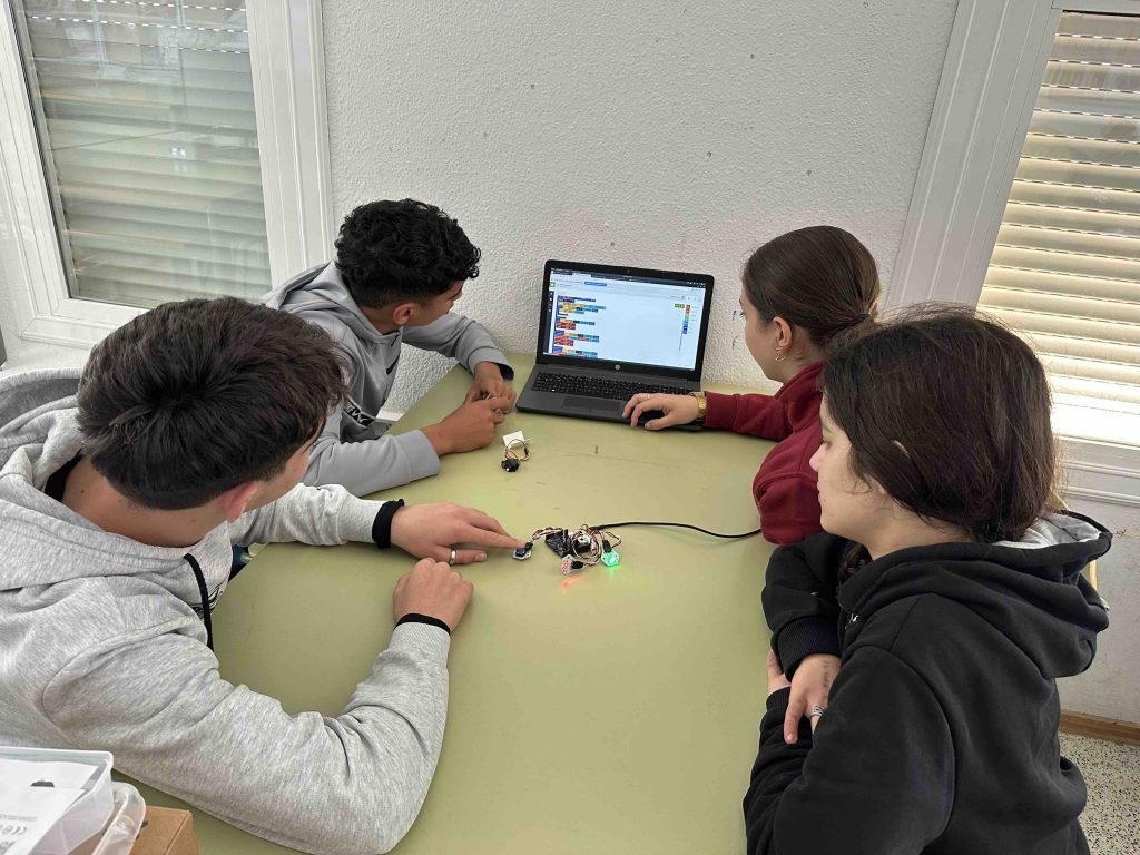 Con todas estas limitaciones encima de la mesa, el trabajo continúa. Los grupos están funcionando, el alumnado se está familiarizando con las placas y con la programación por bloques, y poco a poco vamos encontrando la manera de que las restricciones del entorno no bloqueen el aprendizaje.