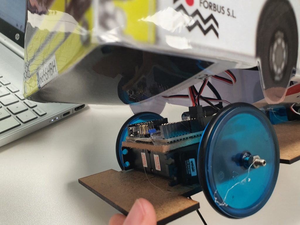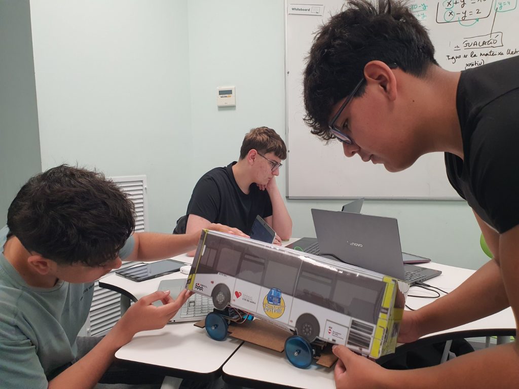 Finalment, el sistema s’ha completat amb la incorporació d’una carcassa que simula l’aspecte d’un autobús urbà de Valls. Aquest element no només aporta un valor estètic al projecte, sinó que també reforça la seva finalitat educativa, apropant la maqueta a una representació més fidel del vehicle real.